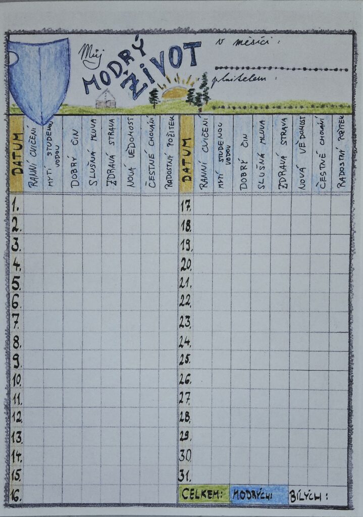a) Každý den poctivě vybarvím modrou barvou políčka, která jsem splnil. U políček, která si nemohu zodpovědně ověřit sám, se zeptám rodičů, či svých přátel.